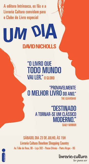 Pra quem já leu, OU ainda não leu Um dia, não pode perder o evento organizado pela editora Intrínseca, justo no dia 15 de Julho, um dia especial para Emma e Dexter, e claro, pra nós. Caso você não saiba por que esse dia é tão especial, leia a resenha ou compareça a um dos eventos pra descobrir! :)